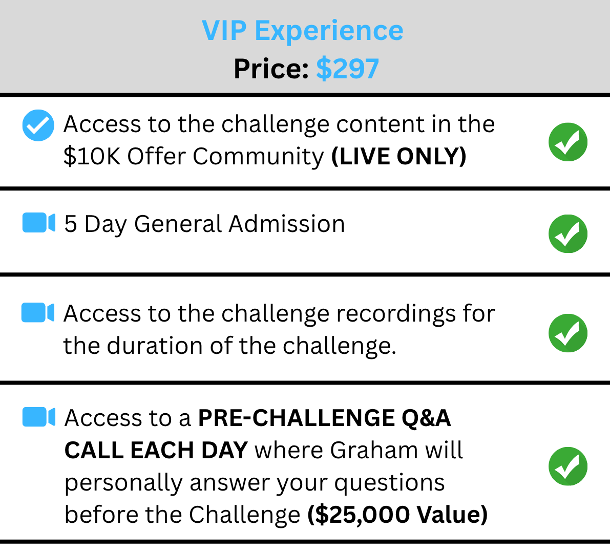 💬Enjoy a 1-hour Q&A session before all 5 days of the Challenge with your host, Graham Cochrane by securing a VIP ticket!